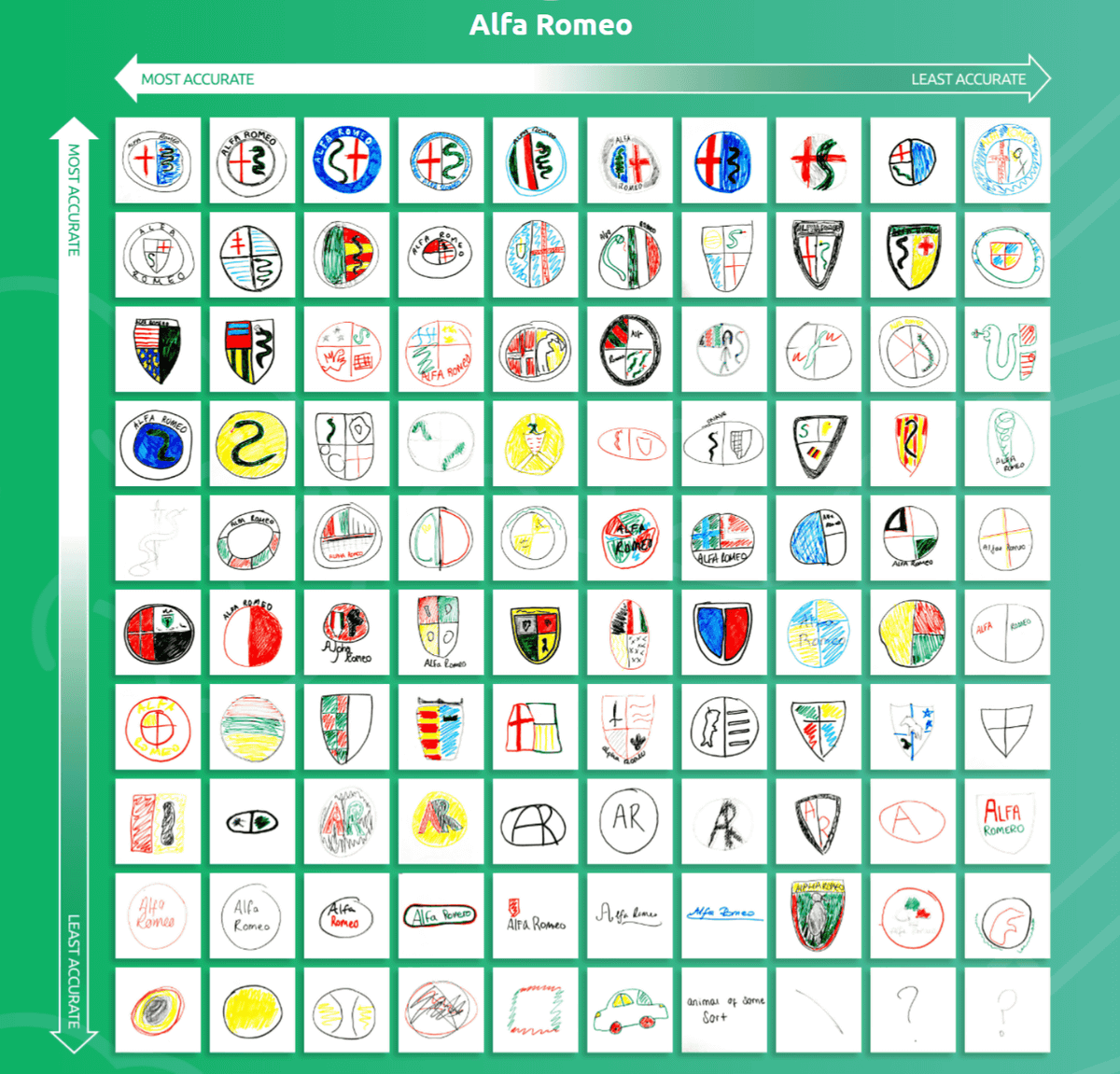 車のエンブレムを記憶だけで正確に描くことができるか?」を100人にテストしたらこうなった - GIGAZINE。