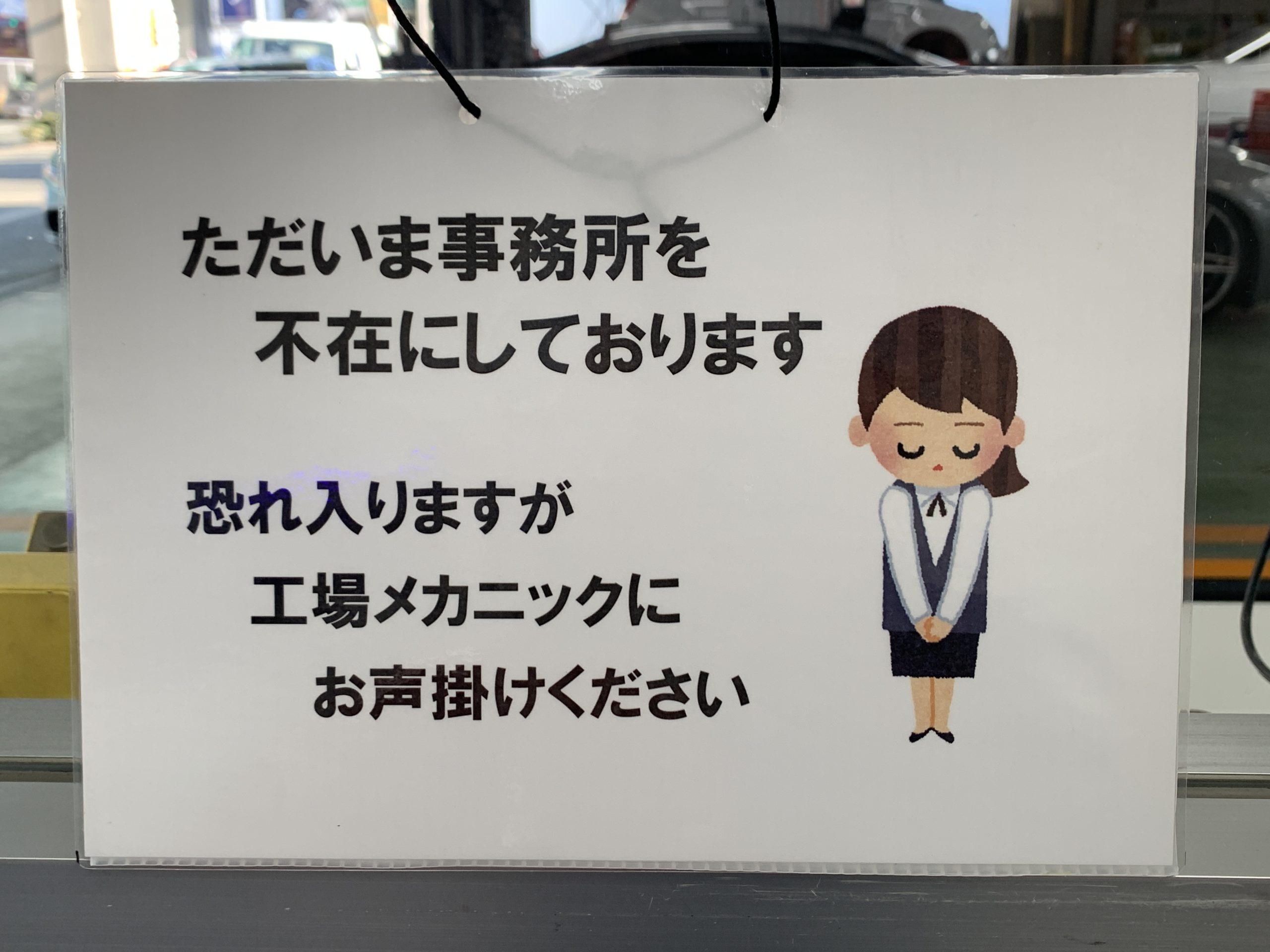 事務所不在時の「掲示板」ご案内有限会社山内ガレージ。