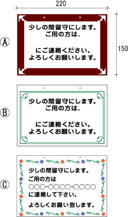 楽天市場 表示板・留守告知 大 300mm×450mm: 文字、看板の 宅配ヒヨシサイン。
