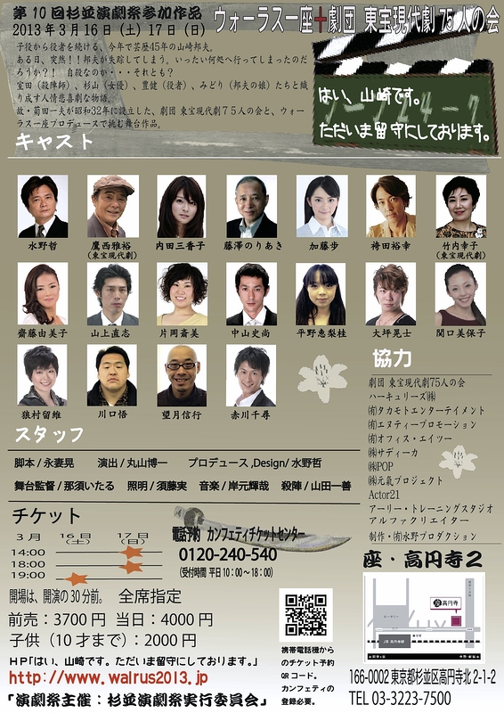 はい、山崎です。ただいま留守にしております。演劇・ミュージカル等のクチコミ&チケット予約☆CoRich舞台芸術。
