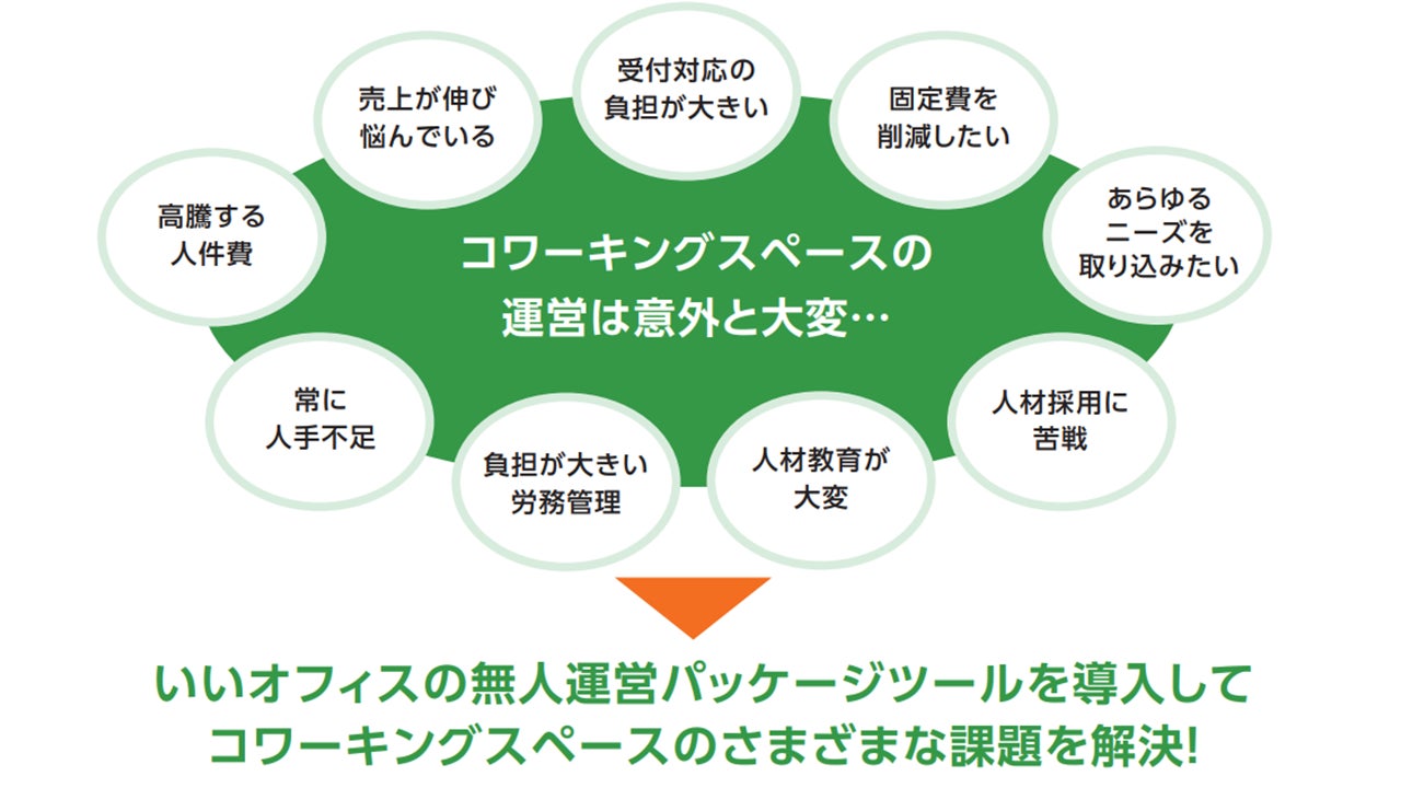 人手不足・売上停滞・ニーズ多様化 コワーキングスペースやシェアオフィス、貸会議室の経営課題を省人化・無人化で解決!いいオフィスが無人運営パッケージをリリース株式会社いいオフィスのプレスリリース。