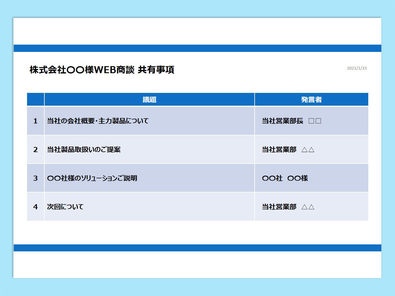 Web 会議用アジェンダ - 無料テンプレート公開中 - 楽しもう Office。