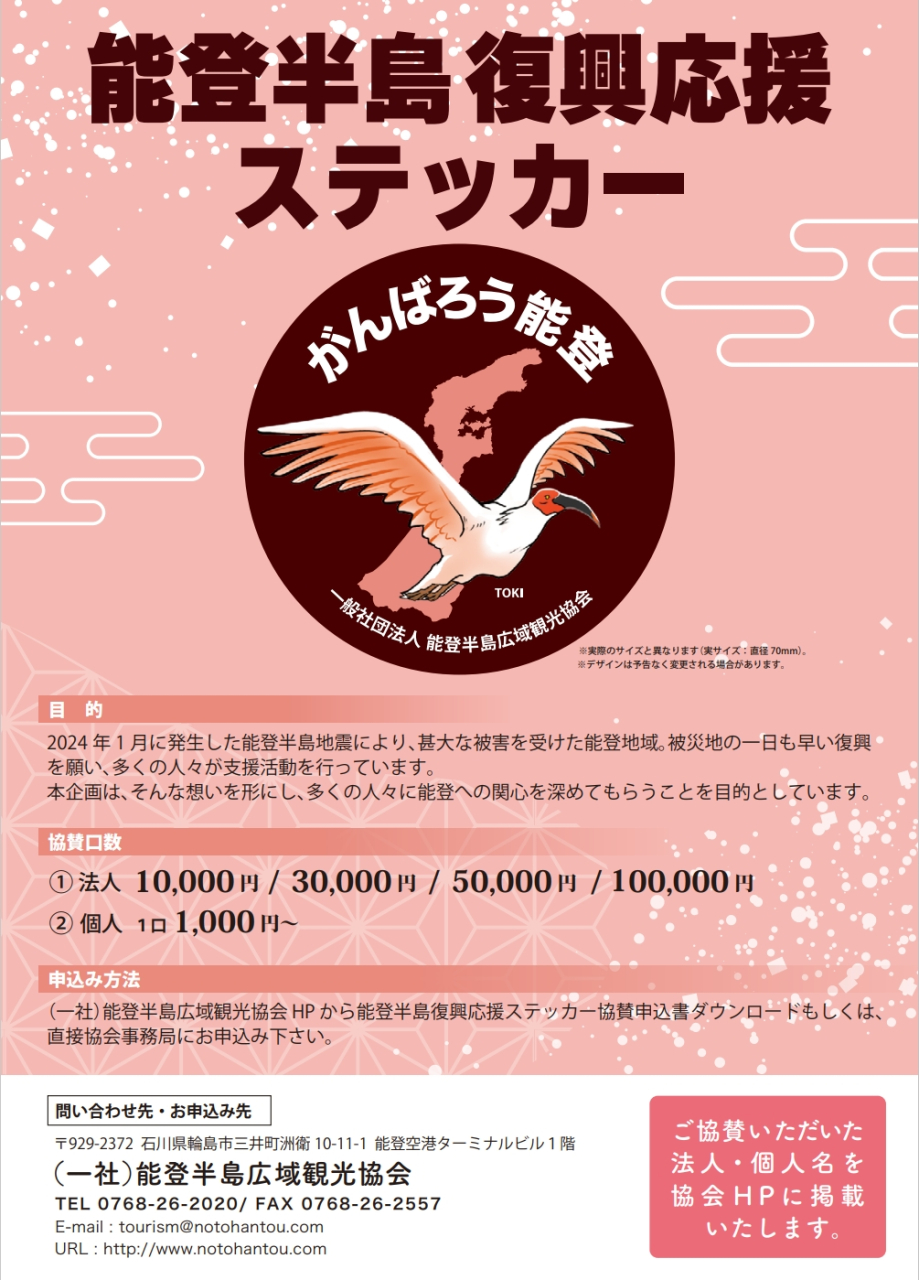 Pray for Noto🙏 能登復興支援ステッカーが届きました。 すでに募金してくださった方も多数いらっしゃいますが 引き続き私たちにできる事から継続していきたいと思いますのでご協力よろしくお願いします!prayfornoto能登震災復興 支援ステッカー 能登復興支援。