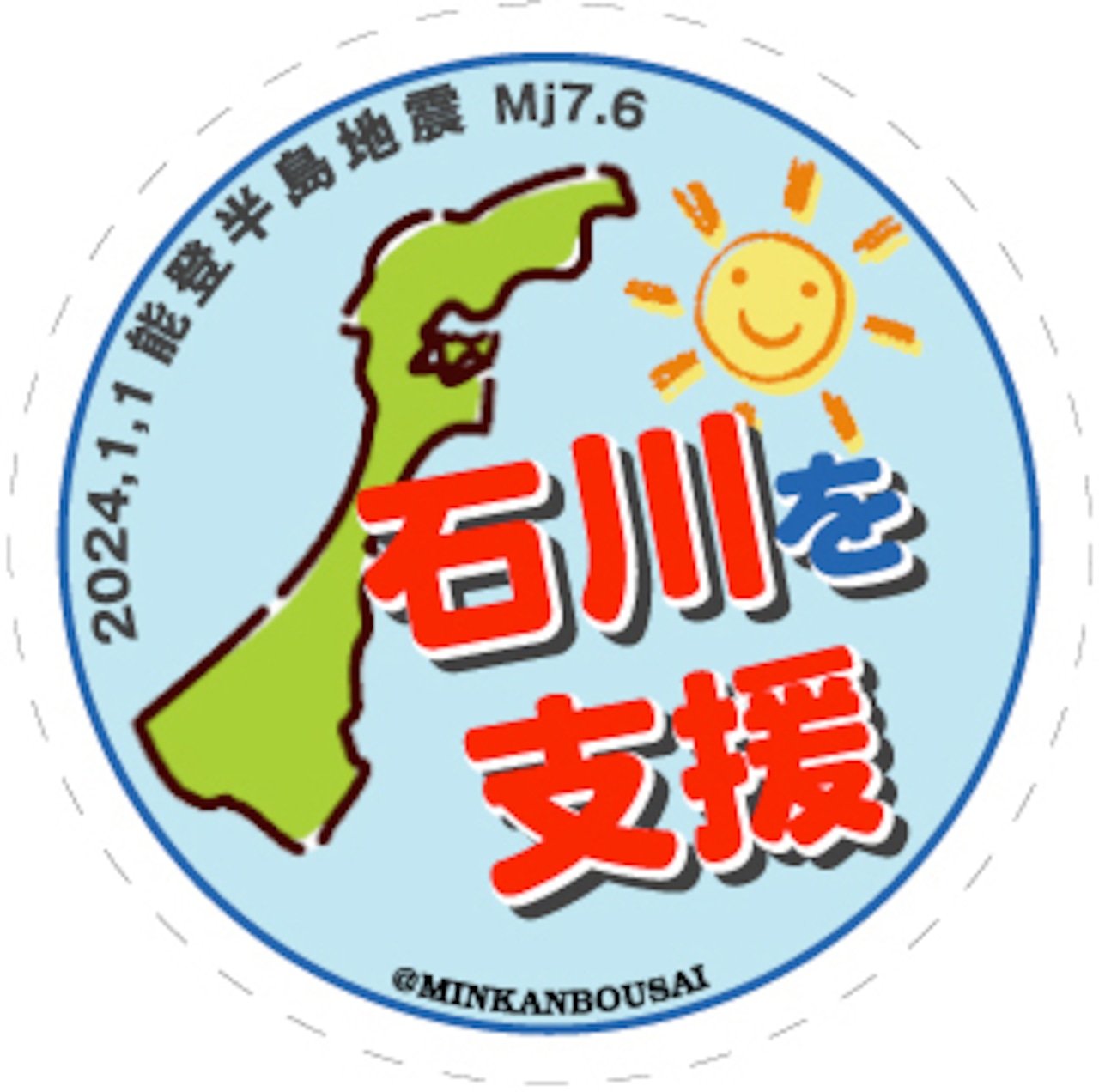B-1「石川応援&支援」「能登応援&支援」円形4種 令和6年能登半島地震チャリティーマークデーター民間防災危機管理ブランド民間防災「防人司オフィス」。
