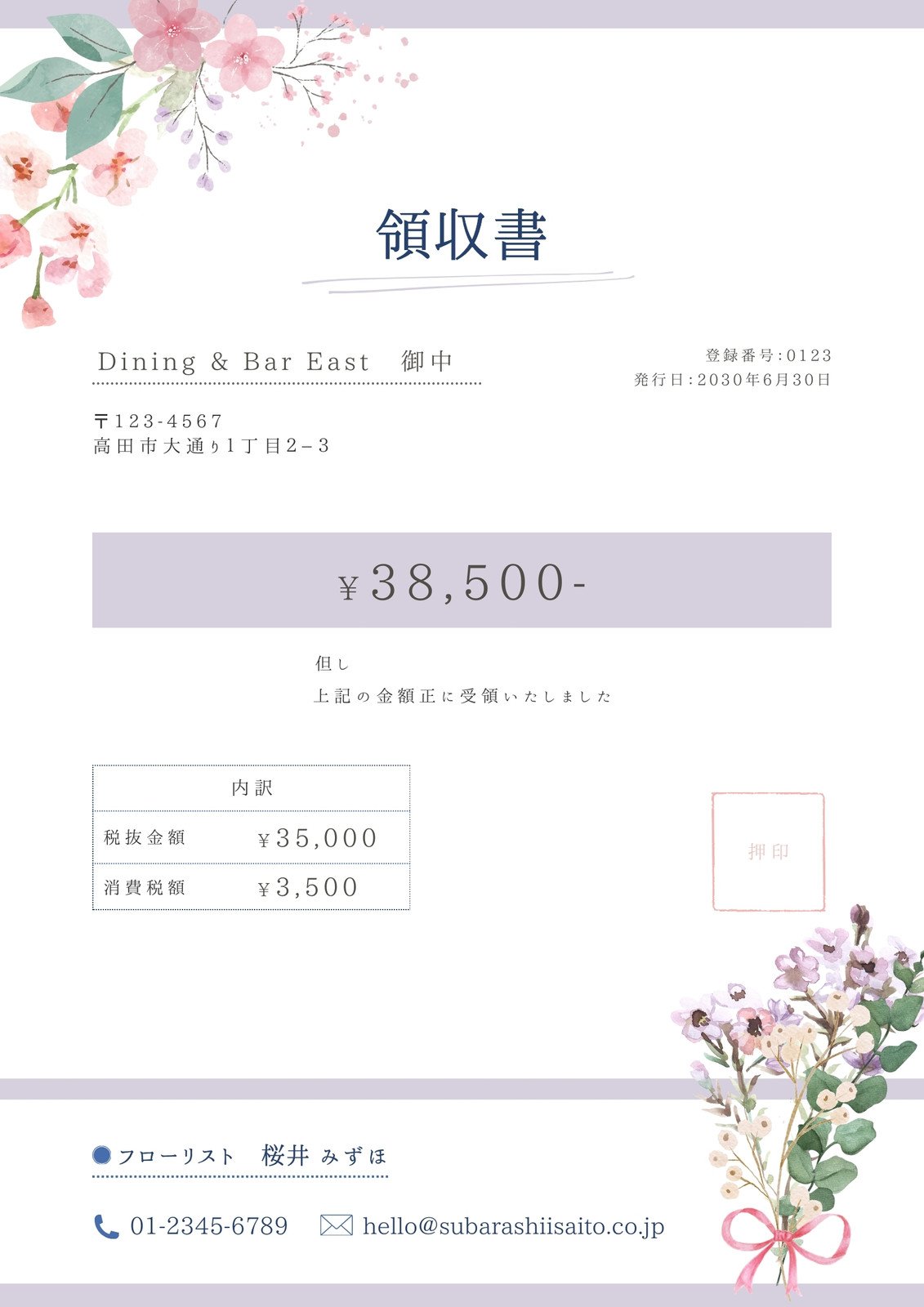 イラストデザイン入りおしゃれな「領収書」テンプレート・優しいタッチのデザインで個人事業主 イラストボックス「プレミアム」テンプレート。