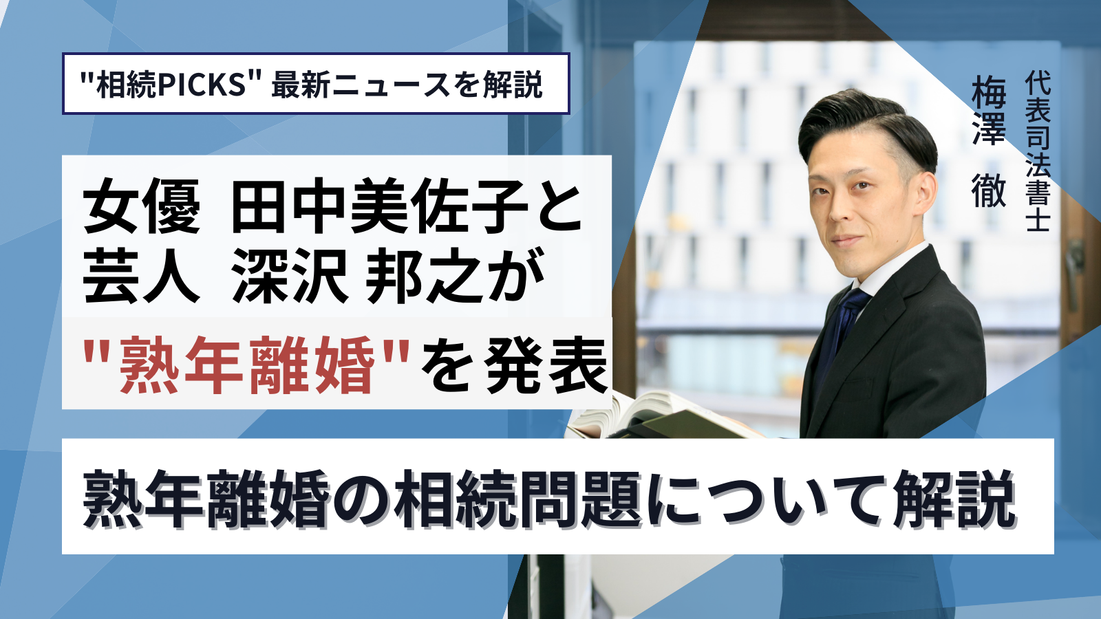 司法書士解説 女優田中美佐子、お笑い芸人深沢邦之の熟年離婚!相続のことを考えてみる - 相続・遺言に関する無料相談はあいりん司法書士事務所。
