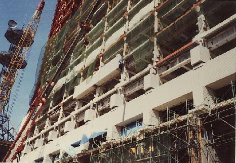 警視庁本部庁舎外壁改修工事 JSS 超高圧洗浄 ・リニューアル工事実績不二窯業株式会社。