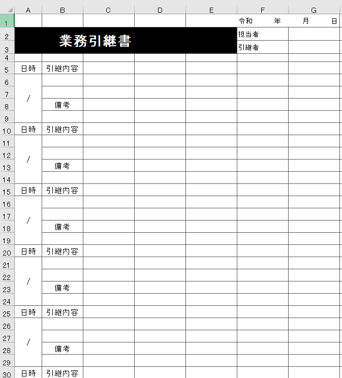 業務引継書テンプレート_マス目が多く使いやすい エクセル・ナンバーズ無料テンプレート Mac・Windows 『ひな形ジャーナル』。
