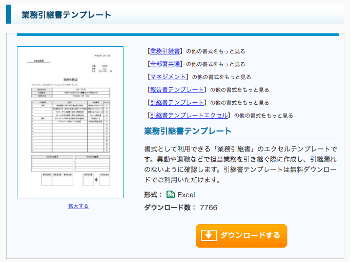 書き方や書式の見本に!業務引継書の「エクセル・ワード・PDF」のテンプレート、雛形をダウンロード!作り方簡単でシンプルに!「登録不要」テンプレボール。