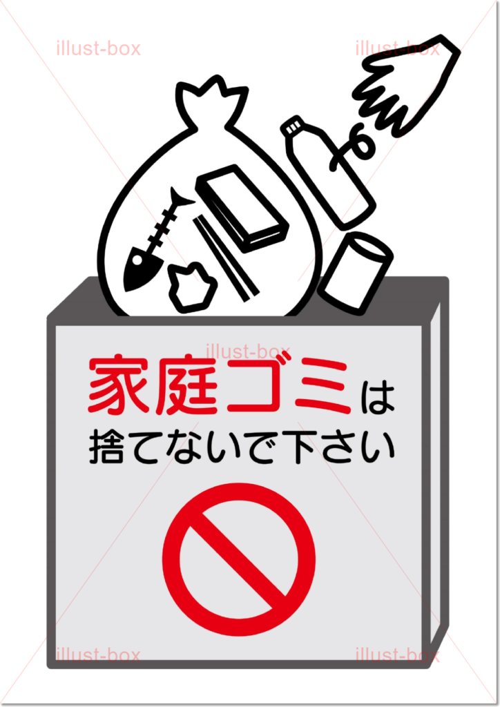 家庭ゴミ持込禁止」注意喚起のA4テンプレート・イラスト入りマナーポスターでかわいい・こ イラストボックス「プレミアム」テンプレート。