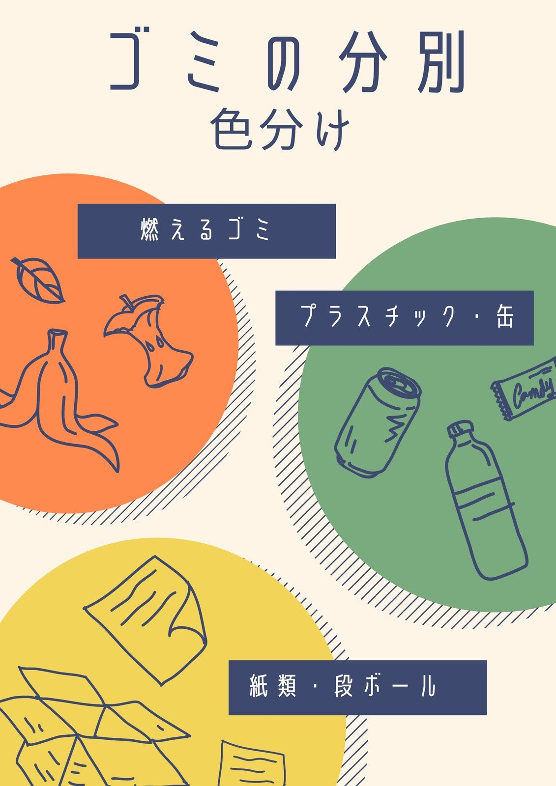環境月間 ゴミ分別のための貼紙テンプレート 無料Canva 山文路意匠室 │ 和風デザイン。