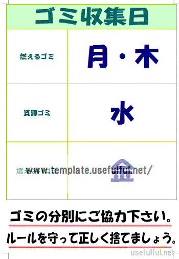 ゴミ収集日のお知らせ - Wordで作成した無料テンプレートのダウンロード。