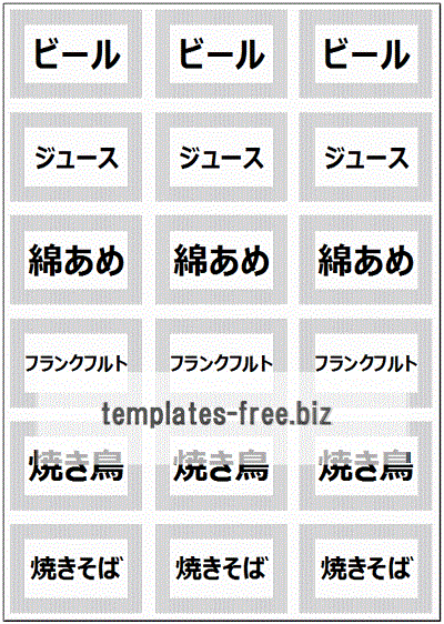 お祭りのフードとドリンクの引換券 -ビール・綿あめ・焼き鳥・焼きそば等 - 無料でダウンロードできるフォーマット テンプレート・雛形。