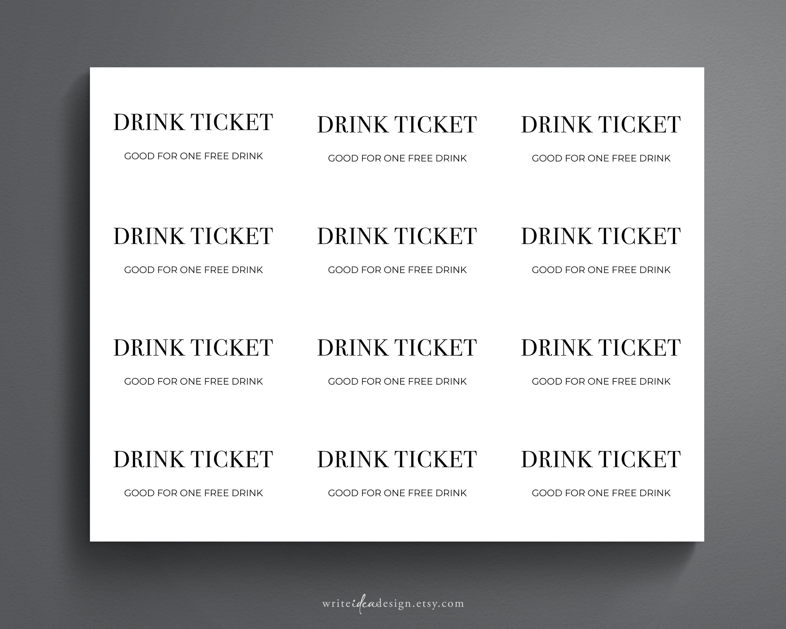 印刷可能なドリンクチケットテンプレート:結婚式とパーティーのバウチャー PDF- Etsy 日本。
