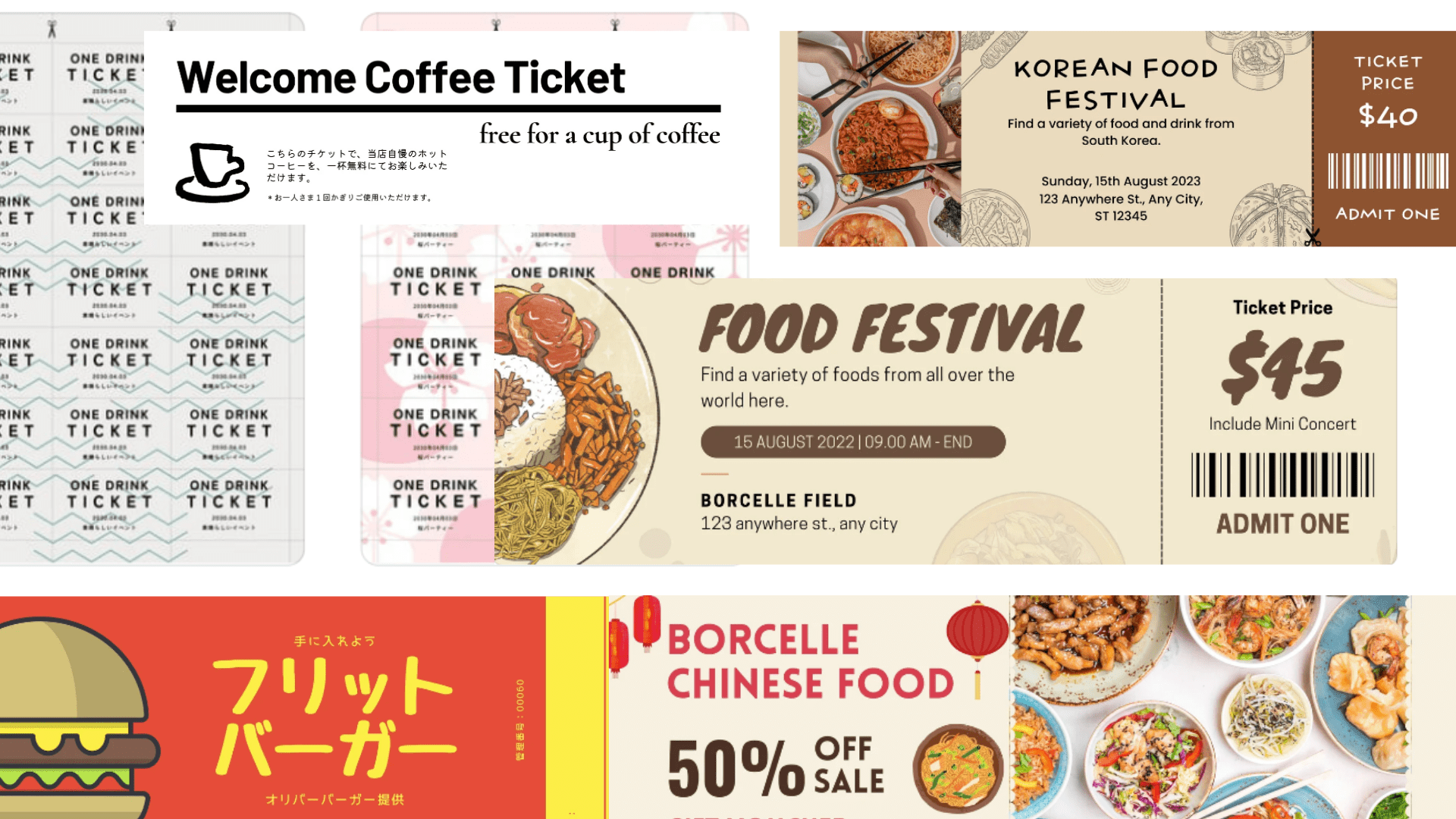 チケット無料テンプレートデザイン。イラストや画像付きも豊富 - Canva キャンバ。