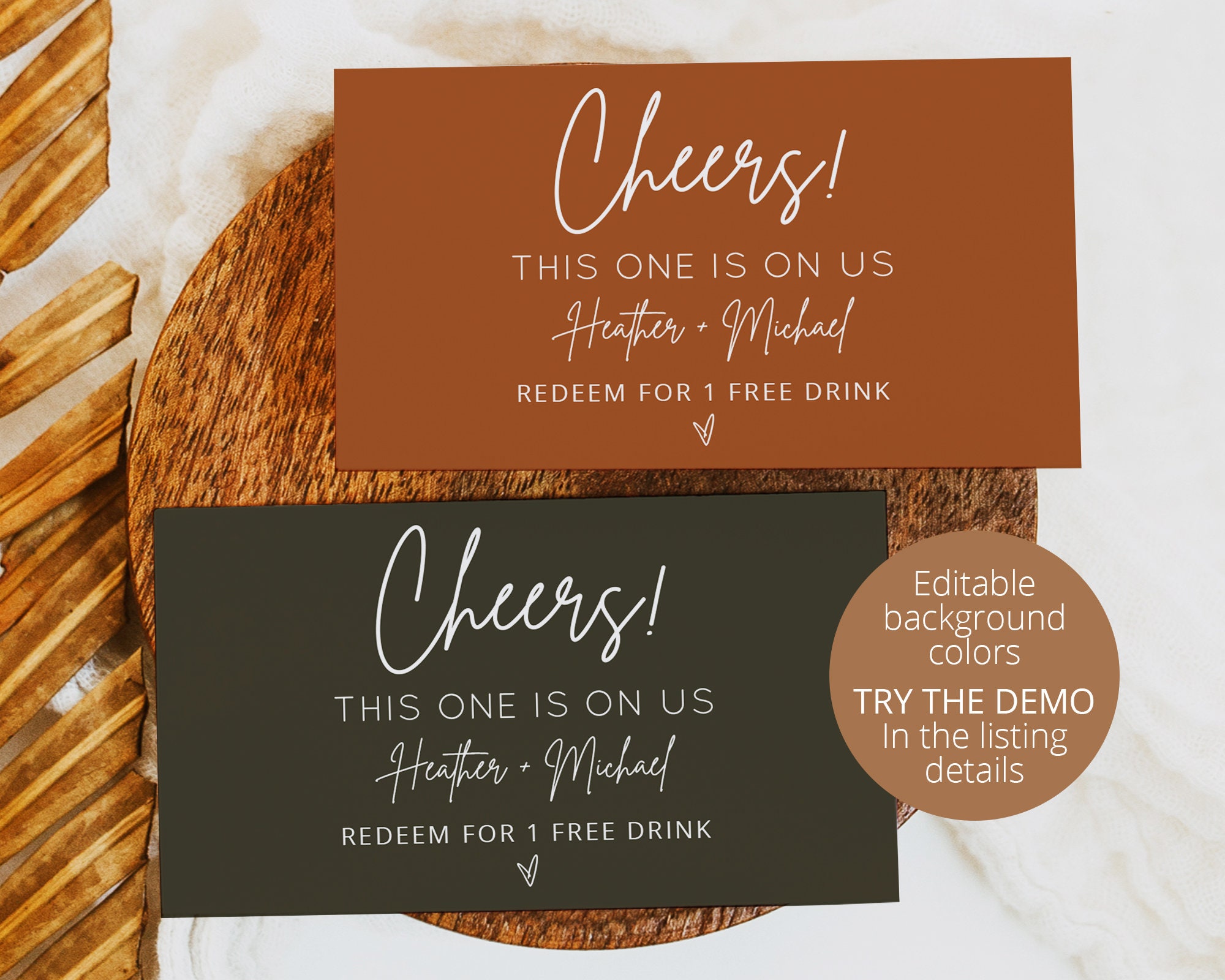 ドリンクチケット テンプレート、ミニマリスト ドリンクチケット、これは私たちがおごります、モダンなウェディング ドリンクチケット、無料ドリンクバウチャー、編集可能なテンプレート M9 - Etsy 日本。