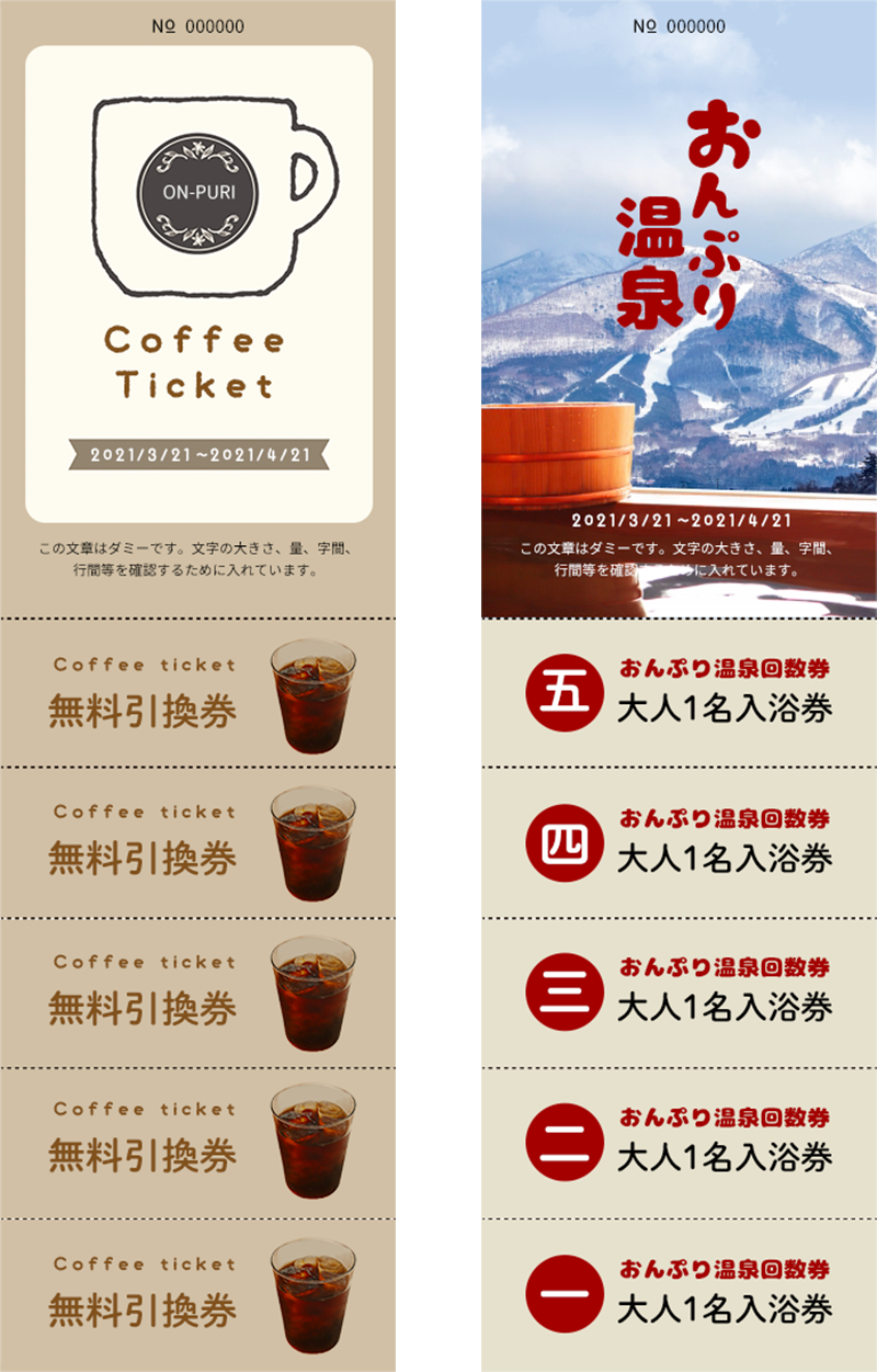 ドリンクチケット 種類とデザインが異なる2種類- 無料でダウンロードできるフォーマット テンプレート・雛形。