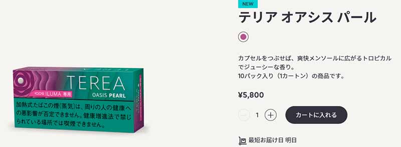 テリア オアシスパールIQOS イルマ専用たばこ公式 Japan Duty Free GINZA取扱い商品検索サイト。