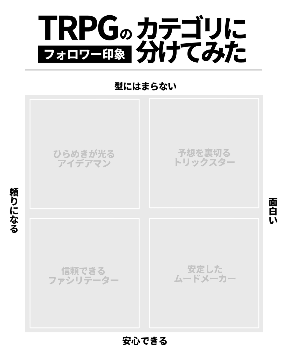 🦌@sika104_xxx : "RT @yomi043:テンプレ TRPGでのフォロワーの印象をカテゴライズして遊べるテンプレー "。