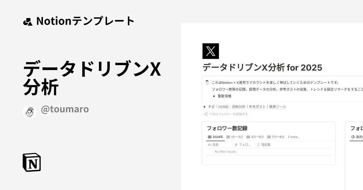 データドリブンX分析テンプレート・作成者:とうまろNotionノーション マーケットプレイス。