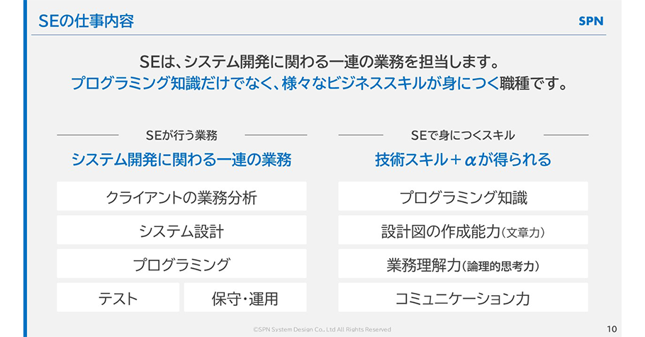 パワーポイントを使って会社・部署・仕事内容を紹介する。