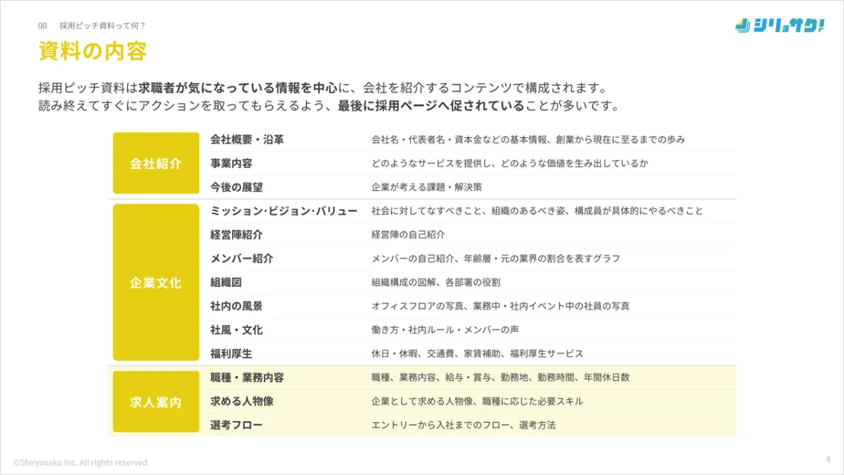 テンプレ付 新卒会社説明会の資料作りの必須項目・デザインのNG例とパワポのテンプレを紹介 - 人事ZINE。