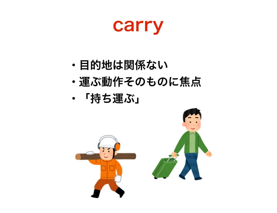 carryの意味は?「運ぶ」を意味するbringとの違いも例文解説 - 笑えるEnglish藤原紗耶公式サイト。