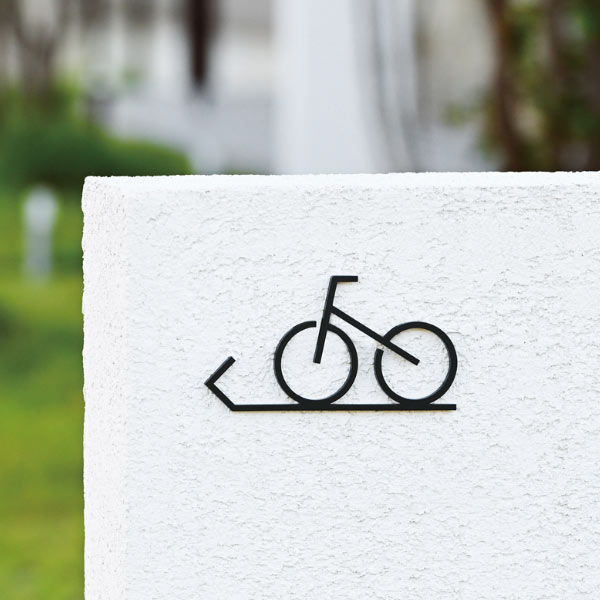 ステンレス切り文字 ピクトサイン 壁付けタイプ 駐輪場サイン 左矢印 H190×W200×t5mm 焼付塗装黒 室名札 室名プレート ルームサイン 室名サイン駐輪場 モール 店舗 施設 案内サイン 案内プレート おしゃれな看板 kspkt-h08。