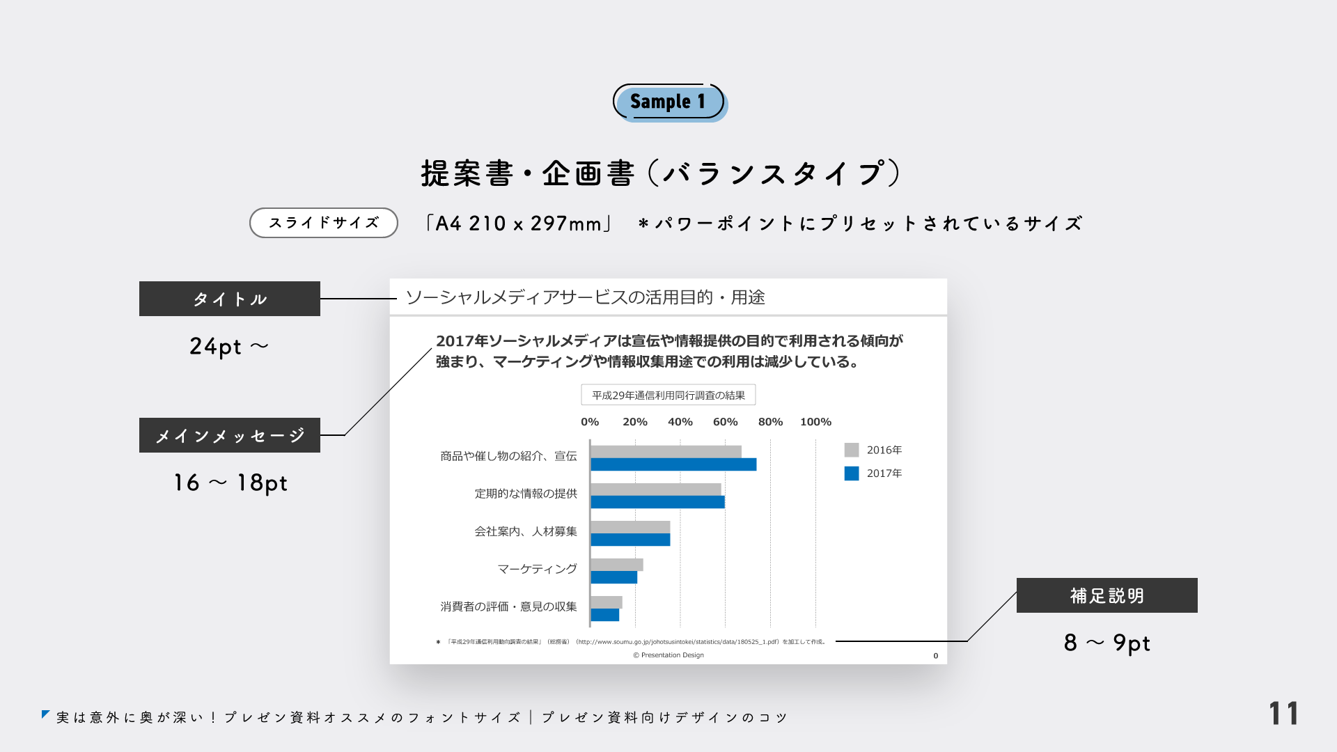 実は意外に奥が深い!プレゼン資料オススメのフォントサイズ プレゼンデザイン。