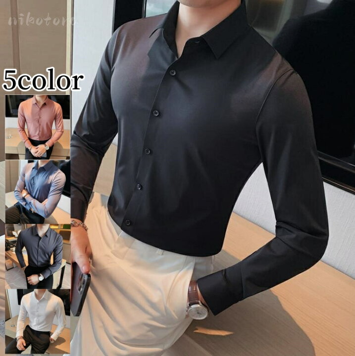 長袖 シャツ カジュアル 男性用 黒 シャツ メンズ 長袖 スーツ インナー 高級 秋 ビジネス カジュアル フォーマルウェアノー アイロン ストレッチ シャツ 大きいサイズのシャツ メンズサカゼン公式通販。