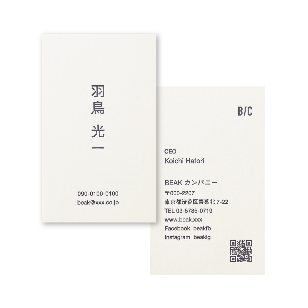 楽天市場 プレスをきかせた活版名刺デザインで選ぶ 斬新で味わい深い 最高級縦型名刺 T-03アイコン表記とびきり おしゃれな名刺印刷 両面印刷も選べる: 夢工房 Print & Design。