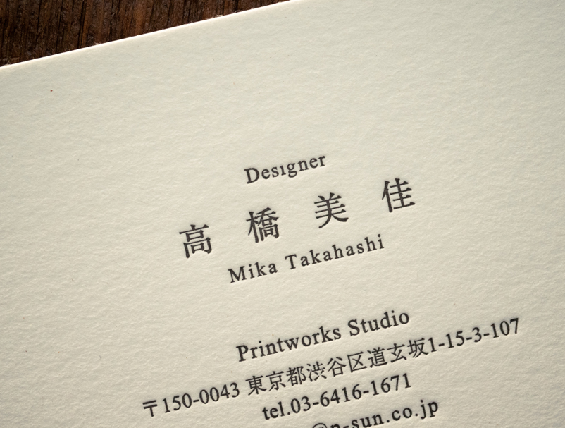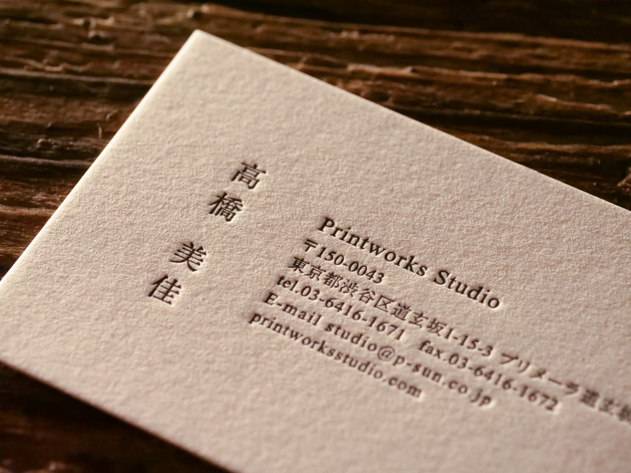 Printworks Studio Shibuya — 白+グレーインキ 活版名刺。