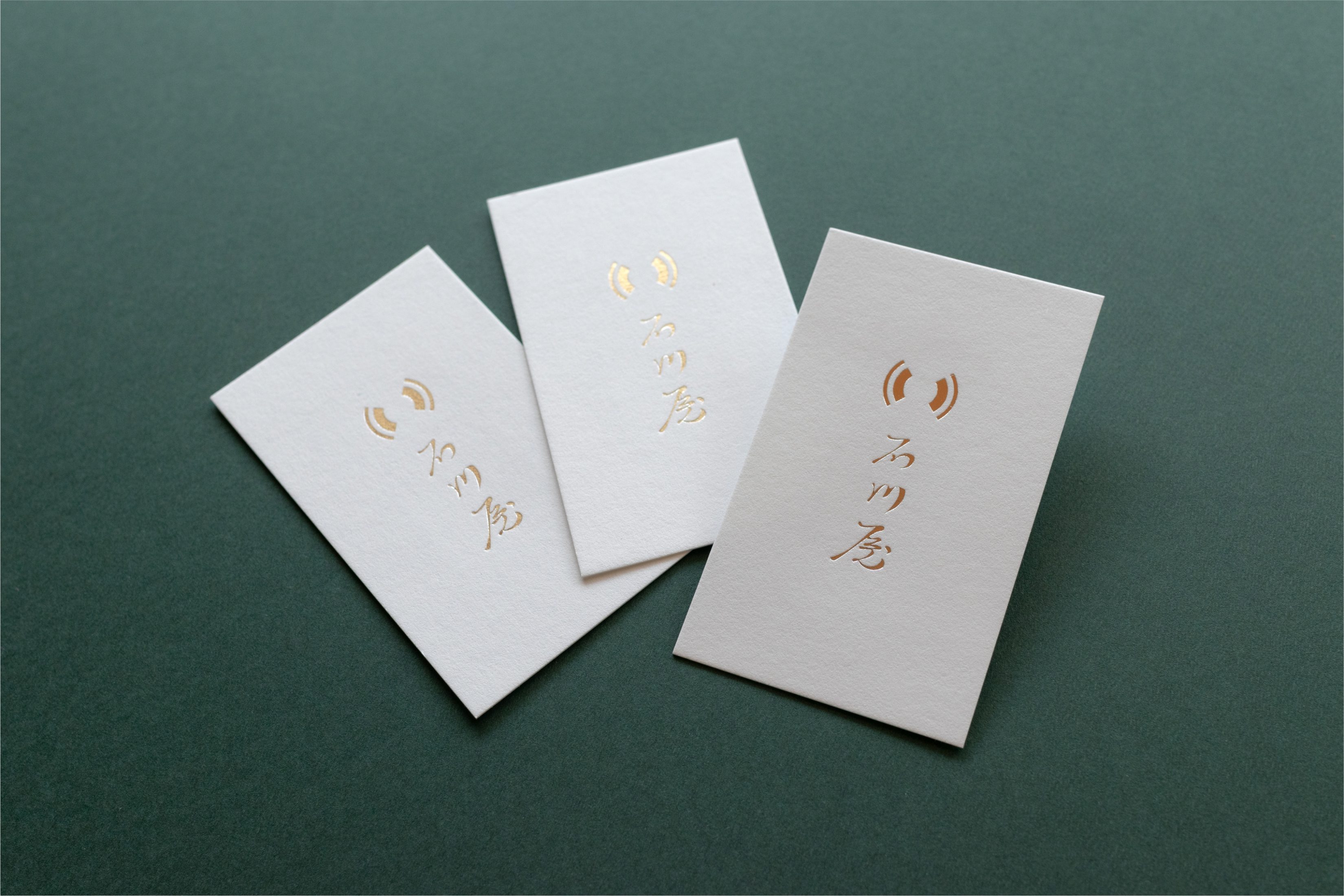 印刷事例のご紹介~ISHIKAWAYA様 箔押し活版名刺~活版印刷ドットコム。
