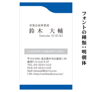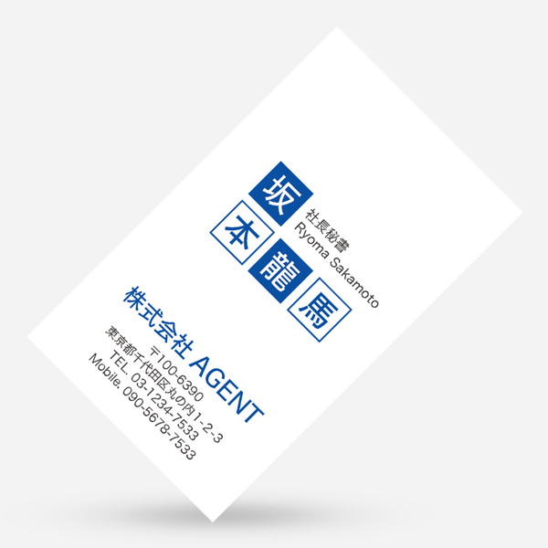 名刺作成印刷100枚単位材質が高品質マットコート紙PP加工! シンプルデザイン 縦書き ブルー 定番 ビジネス 名刺名刺 作成ショップNEXT。