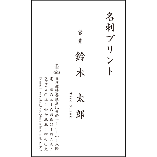 テンプレート 楷書体×縦型 名刺の定番名刺プリント。