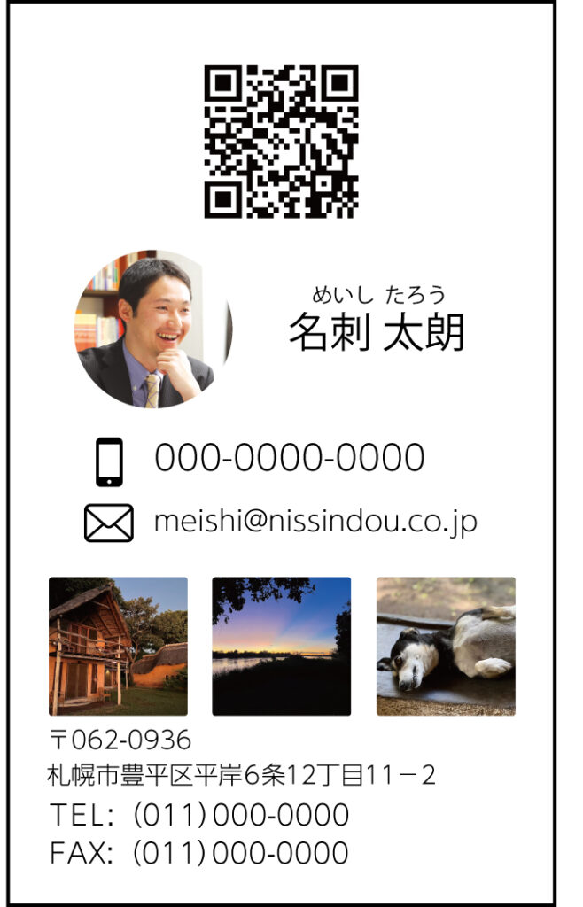 ビジネス名刺縦ハーフカラー QRコード入り3-1。