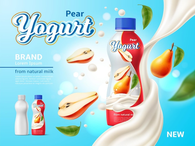 純粋なミネラルウォーター広告、ペットボトルの水では、青の背景に要素をドロップします。のイラスト素材・ベクター Image 82338062。