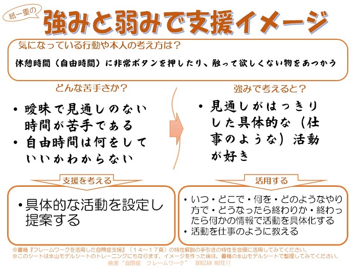 自閉症教育・支援コンサルタント 水野敦之 公式サイト » フレームワーク補助シート『強みと弱みで支援イメージ』を公開しました。