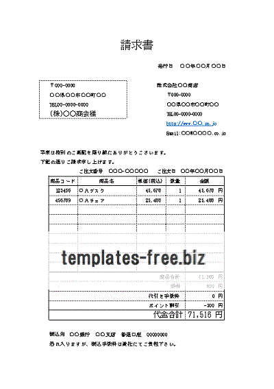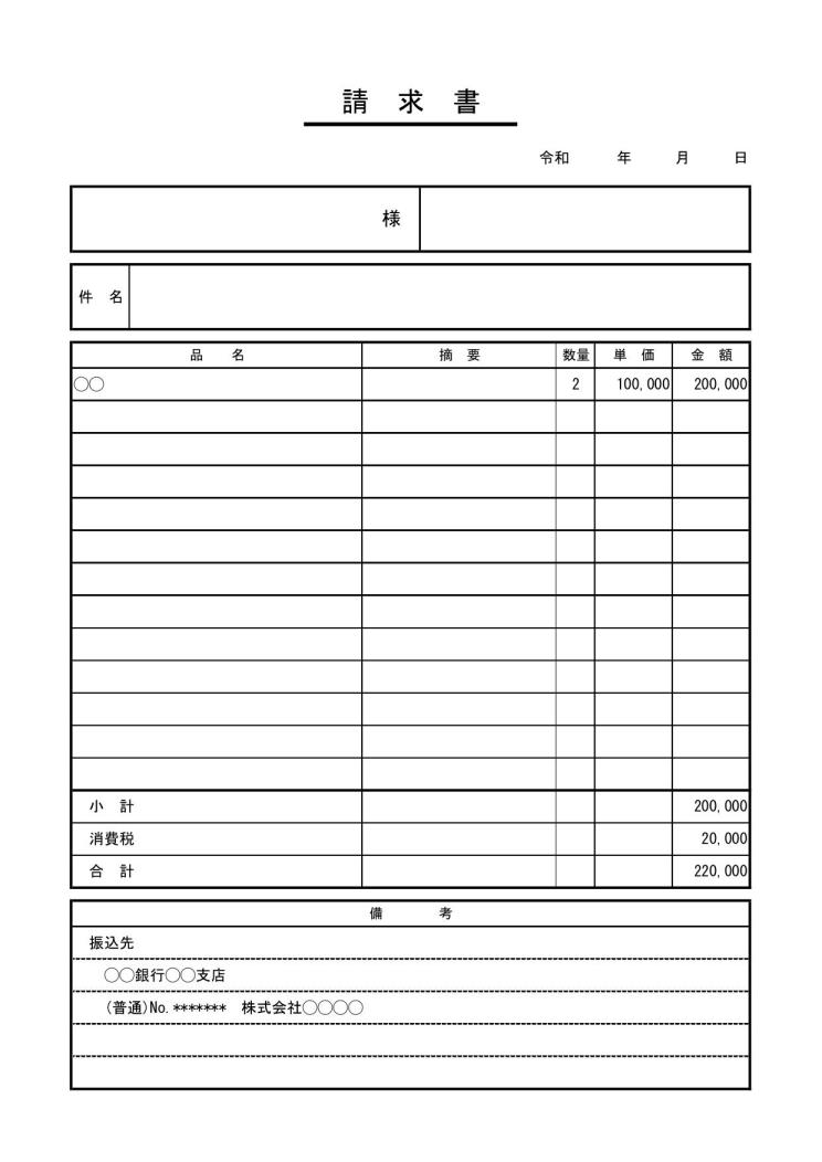 シンプルな請求書2無料の雛形・書式・テンプレート・書き方ひな形の知りたい。