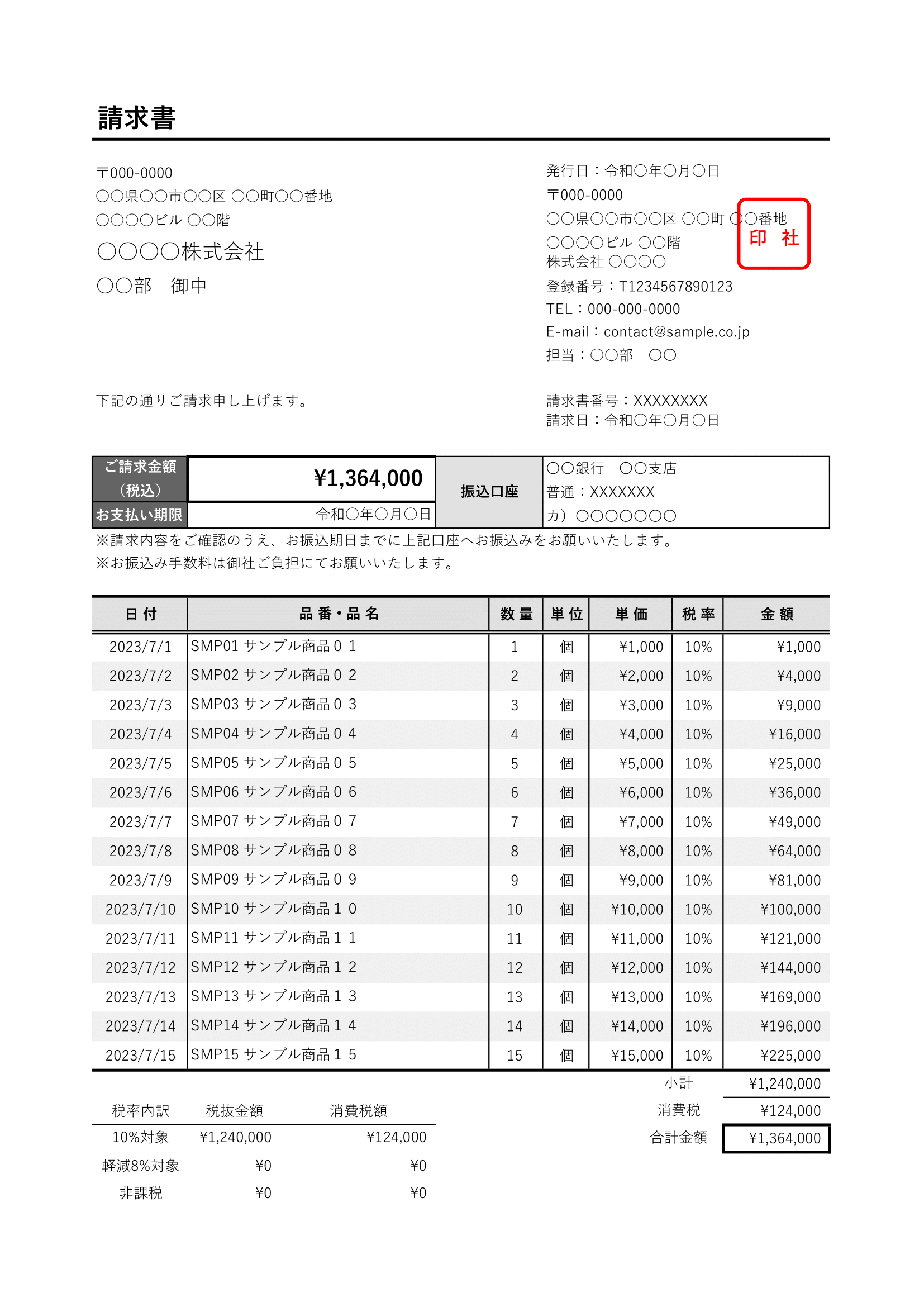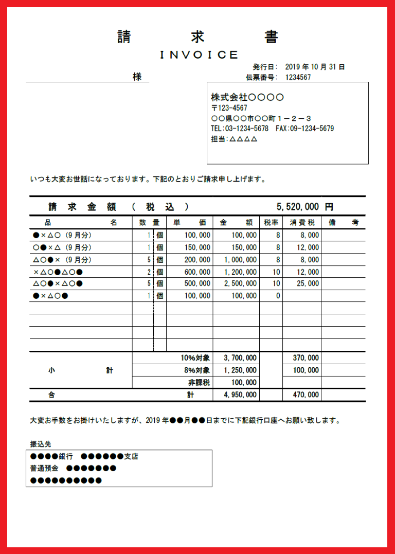 サンプルあり!請求書 軽減税率対応 エクセルの無料テンプレート素材💗無料ダウンロード「かわいい」雛形・テンプレート素材。