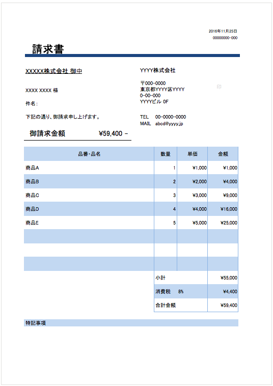 請求書の無料Excelテンプレート集!登録不要ですぐに使える freee無料ビジネステンプレート集。