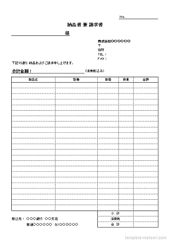 文書 テンプレートの無料ダウンロード: 請求書・納品書 一体型Word版超シンプルA4サイズ消費税欄なし。