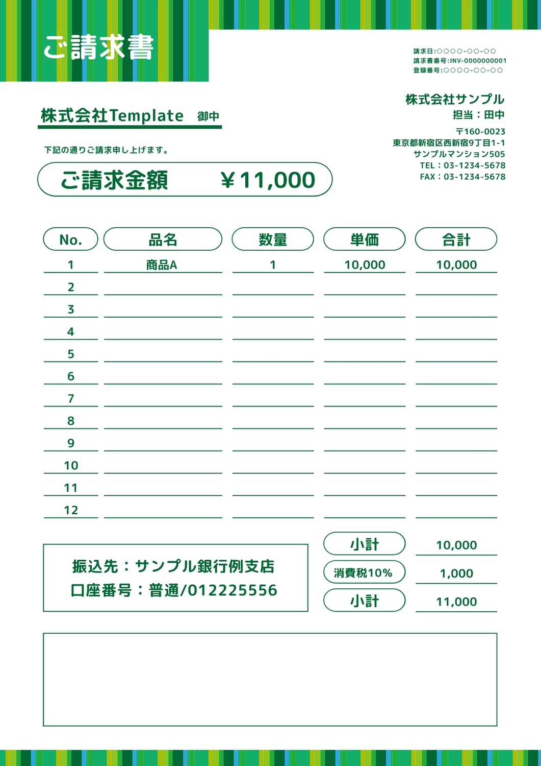 請求書の無料テンプレート素材 グリーン エクセル・Excel📑無料ダウンロード!テンプレルン📑無料ダウンロード!テンプレルン。