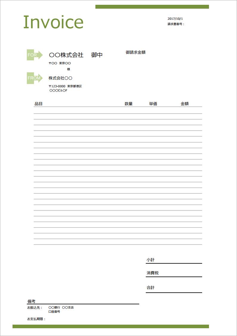 請求書エクセルテンプレート インボイス制度対応シンプルグリーン1無料- Misoca ミソカ- 弥生株式会社 公式。