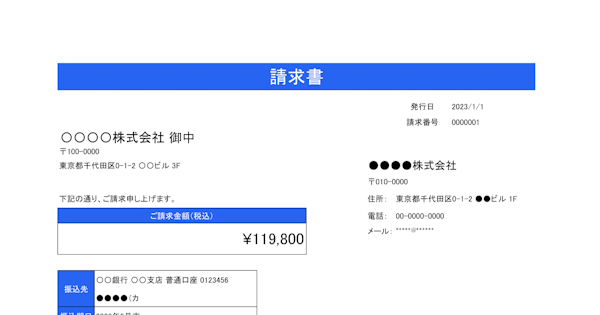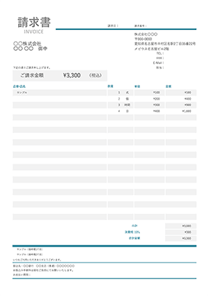 登録不要・無料で使える請求書エクセルテンプレート サンプル 、作成・書き方。