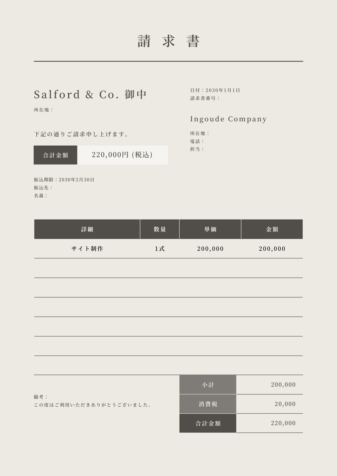 シックなデザイン請求書の無料請求書テンプレート 4990 - デザインAC。
