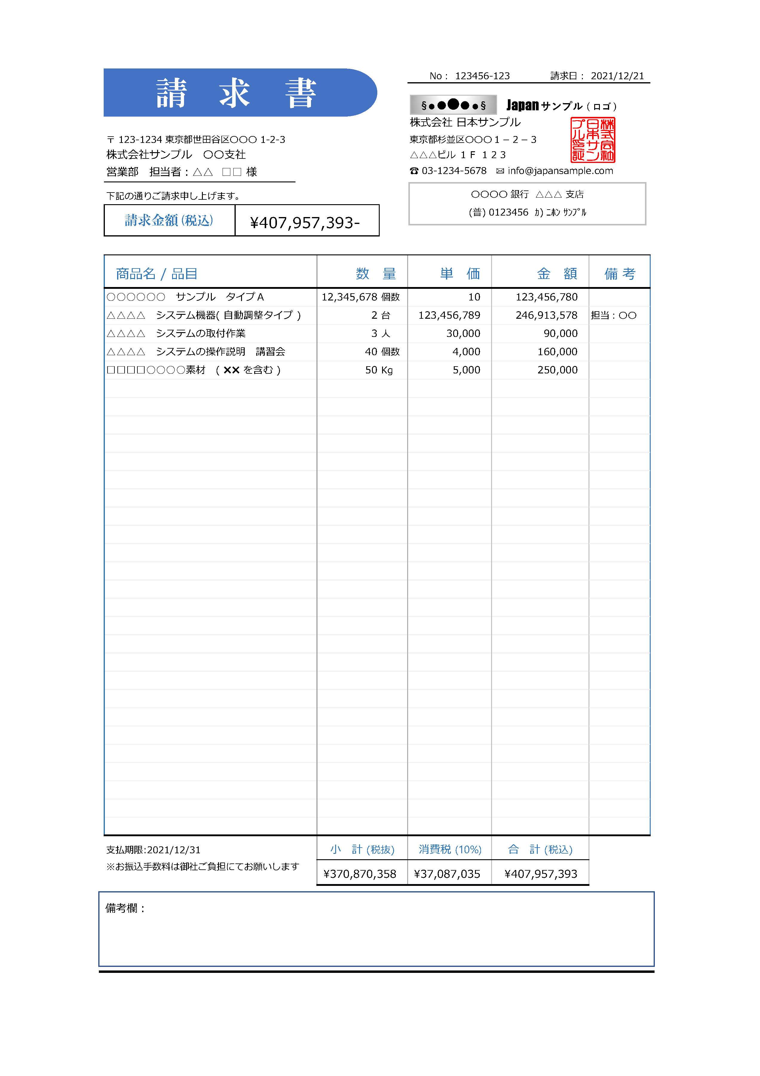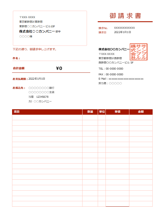 請求書 - 無料テンプレート公開中 - 楽しもう Office。