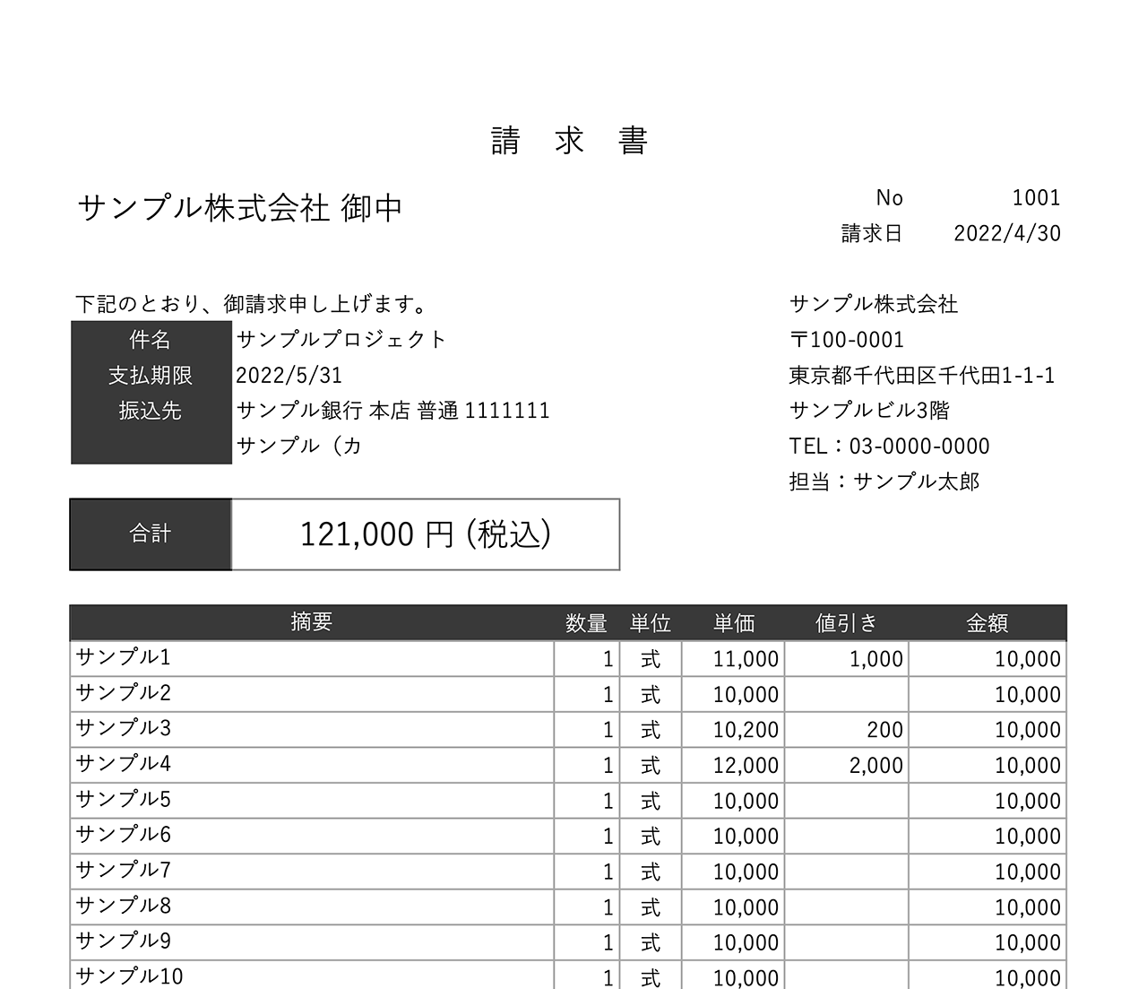 請求書 – エクセルテンプレート フォーマット集MakeLeaps。