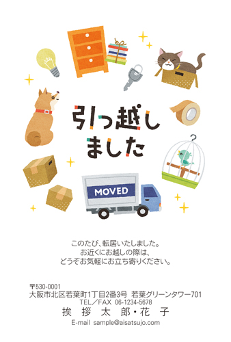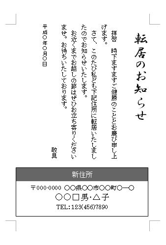 引越しはがき、引越し報告、挨拶状 テンプレート はがき作家 印刷サービス。