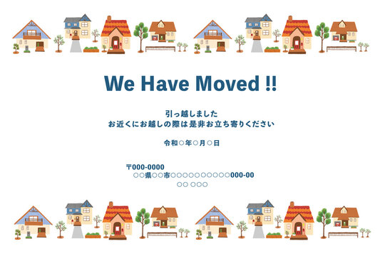 はがきサイズの引っ越しの挨拶状のイラストのイラスト素材74313479- PIXTA。